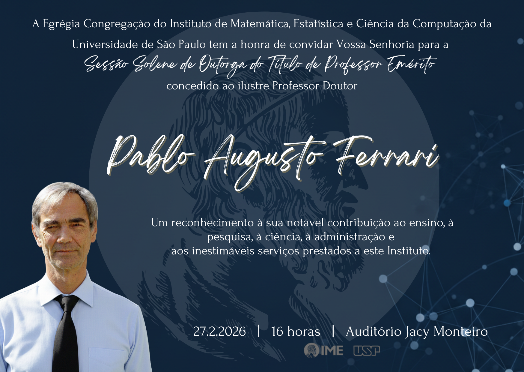 [Probabilidad-Estadistica-Seminario] Sessão Solene da Congregação do IME-USP para Outorga do Título de Professor Emérito - Prof. Dr. Pablo Augusto Ferrari - 27/2/2026